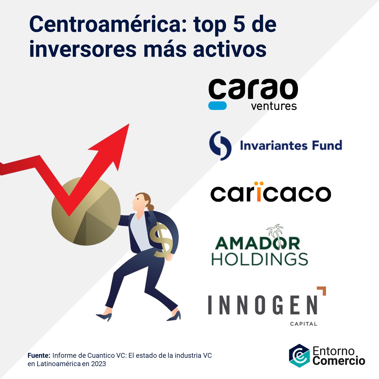 Por aparte, el informe de Cuantico VC, plataforma de inversión enfocada en mapear e impulsar empresas emergentes de la región, denominado: “Estado de la Industria VC en Latinoamérica en 2023”, detalla el top 5 de los inversores a nivel centroamericano que se encuentran más activos, los cuales los describiremos a continuación.