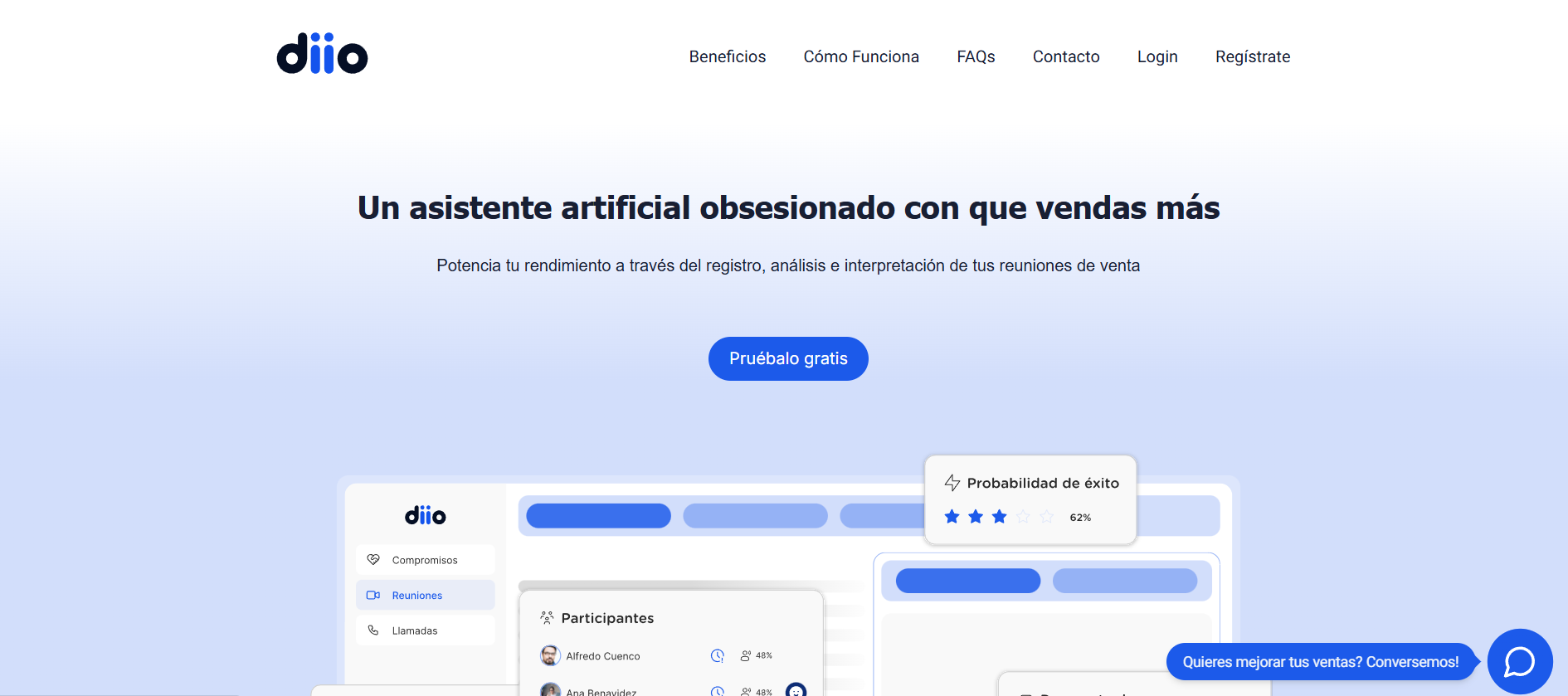 Diio fue fundada por Paolo Colonnello y Nicolás Kipreos de la Fuente, emprendedores con experiencia en startups como Cornershop y Beetrack. Su plataforma se centra en automatizar tareas repetitivas para liberar tiempo a los vendedores. Con esta herramienta, se analizan interacciones como reuniones, llamadas y mensajes para obtener conclusiones accionables.